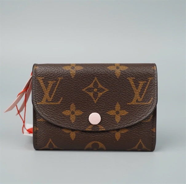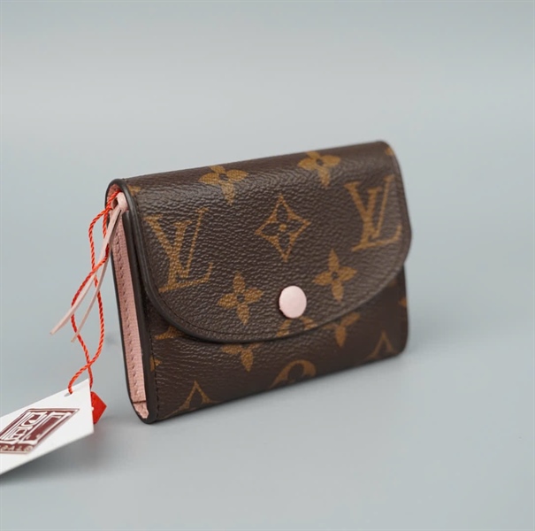Ví card LV hoa nâu nút hồng viền bo (LT)KG+