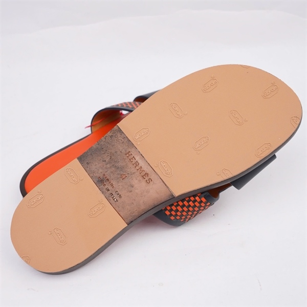 Dép Hermes nâu quai đính cườm sz37 KG+