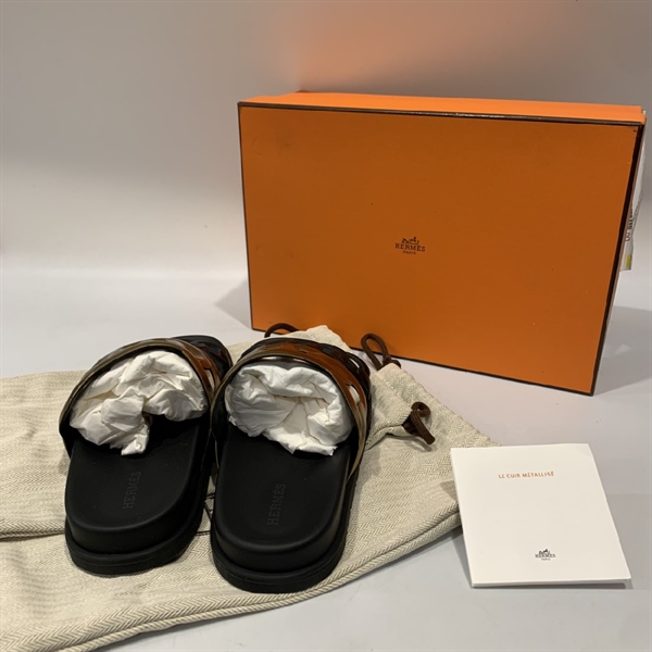 Dép Hermes nâu đế đen size 39½ +
