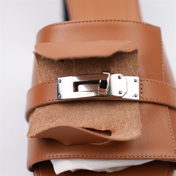Dép Hermes nâu đế đen size 39½ +