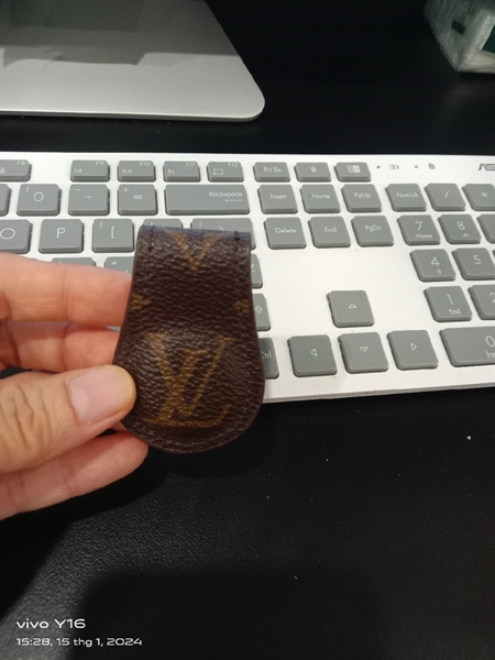 Ví LV hoa nâu gập 2 nút vàng KG+