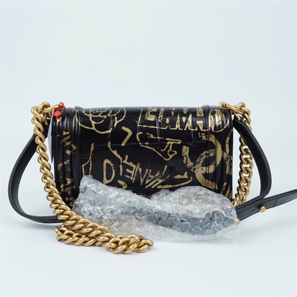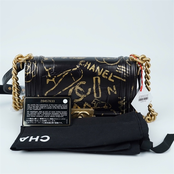 Túi Chanel Boy đen họa tiết vàng (28457633) sz20 (BMC) KG+