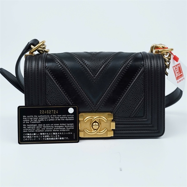 Túi Chanel Boy đen khóa vàng (22462724) sz20 (MV) KG+