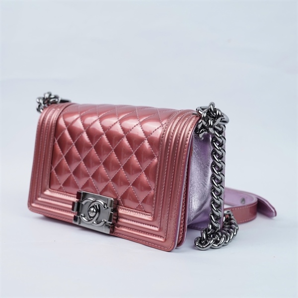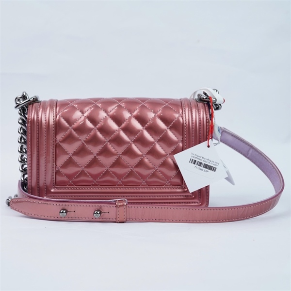Túi Chanel Boy hồng da bóng kèm tag xanh (19383688) sz20 (A-T) KG+