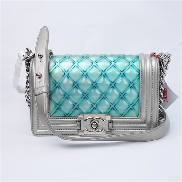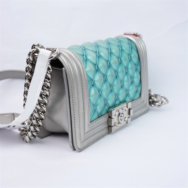 Túi Chanel Boy xanh viền bạc (25901663) sz20 (A-T) KG+