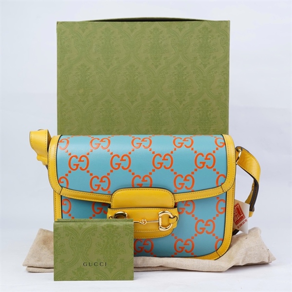 Túi GG 1955 xanh viền vàng (602204-520981) sz24 (A-T) KG+