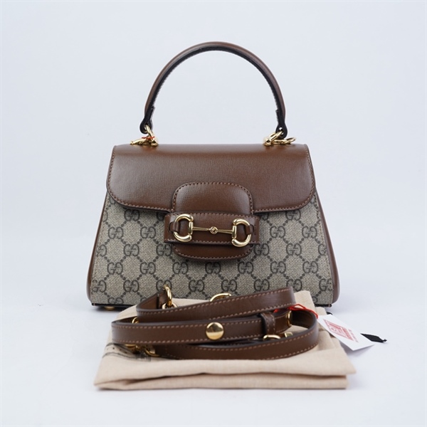 Túi GG Horsebit 1955 xám nắp nâu 2 strap (703848-520981) sz22-18 (HT)+