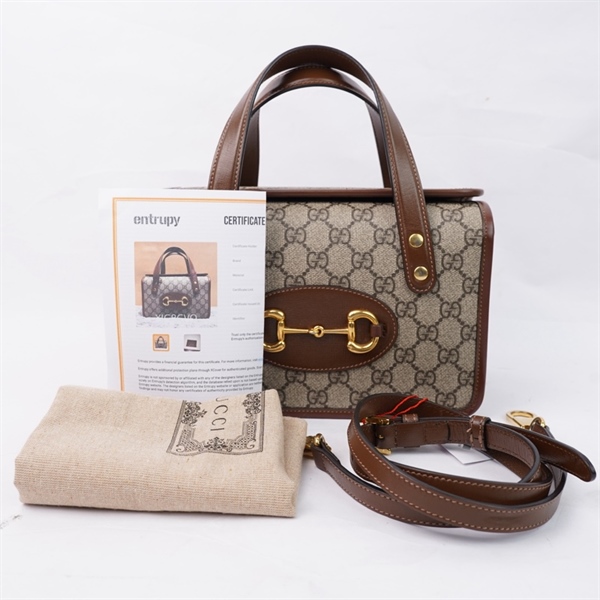 Túi GG Horsebit 1955 xám viền nâu (A035273304) sz23 (HT) +