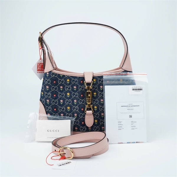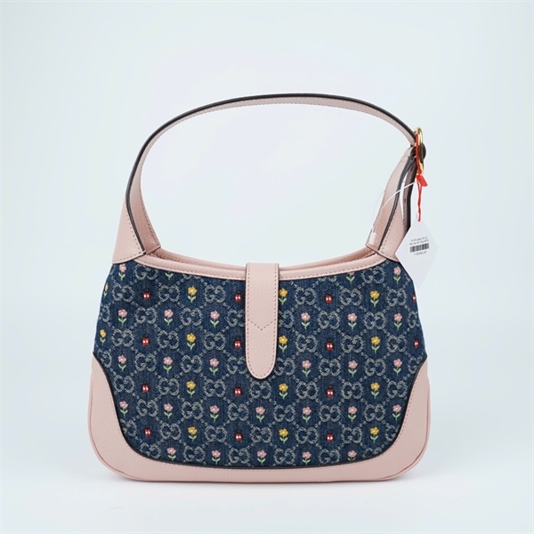 Túi GG Jackie 1961 xanh thêu hoa viền hồng (636706-520981) sz28 (PN) KG+