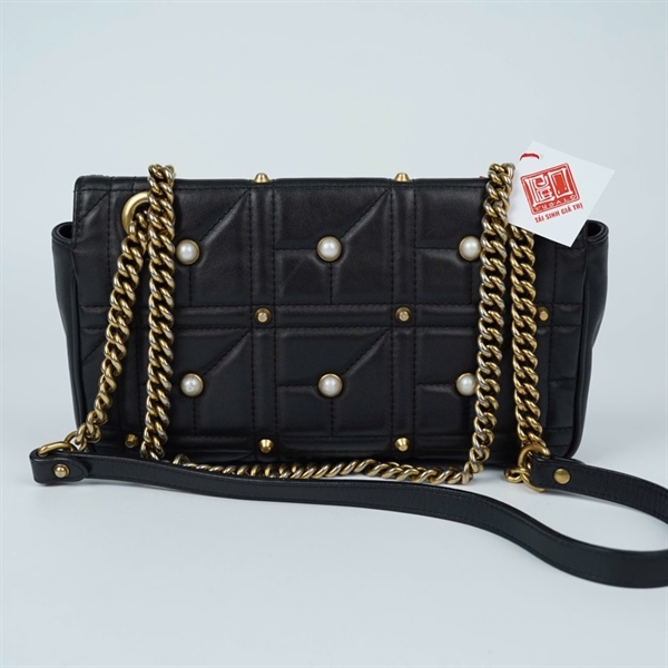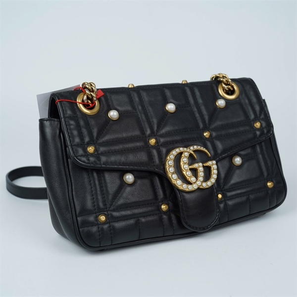 Túi GG Marmont đen đính ngọc (443497-498879) sz25 (TL) KG+