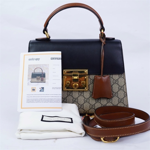 Túi GG Padlock màu nâu phối da sz20 KG+