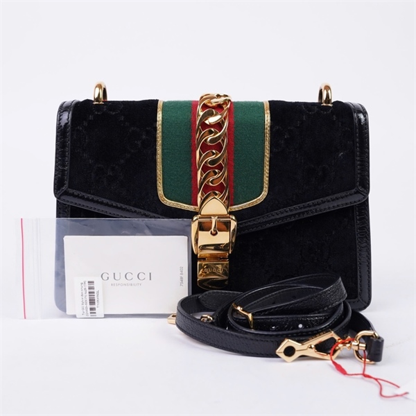 Túi GG Sylvie đen nhung (524405-493075) sz26 (TH) KG+
