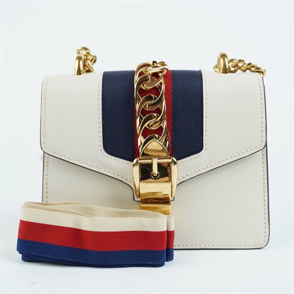 Túi GG Sylvie trắng (477630-520981) sz18 (BMC) KG+