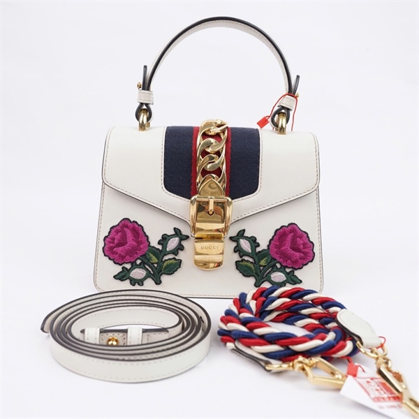 Túi GG Sylvie trắng thêu hoa 2 strap (470270-493075) sz20 (PN) KG+