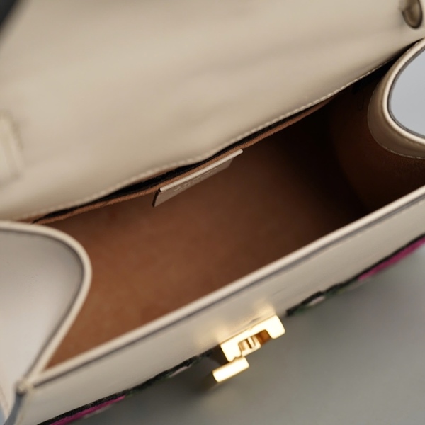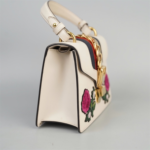Túi GG Sylvie trắng thêu hoa 2 strap sz20 (BQ) KG+