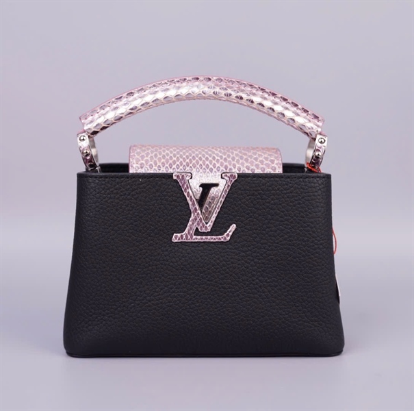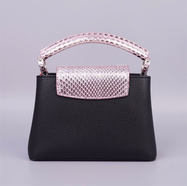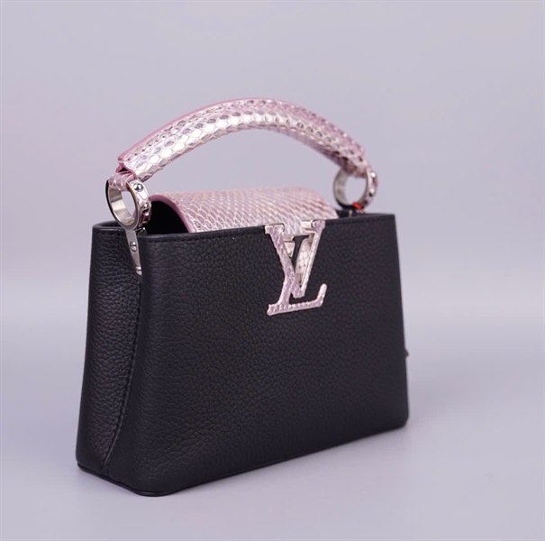 Túi LV Capu đen nắp hồng da trăn sz20 (HC) +
