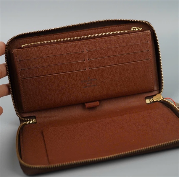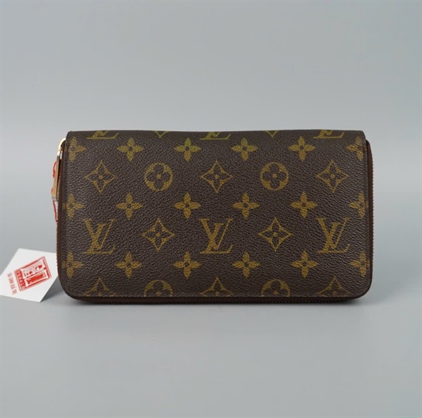 Ví LV hoa nâu khóa zip KG+