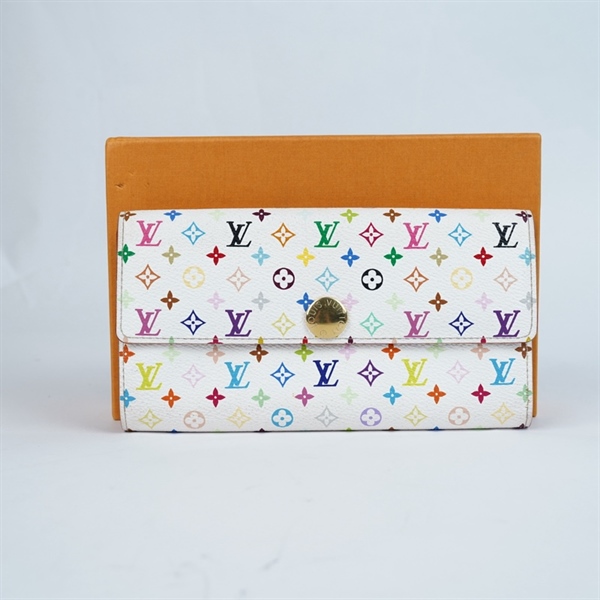 Ví LV trắng có nắp họa tiết Multicolor (LT) KG+